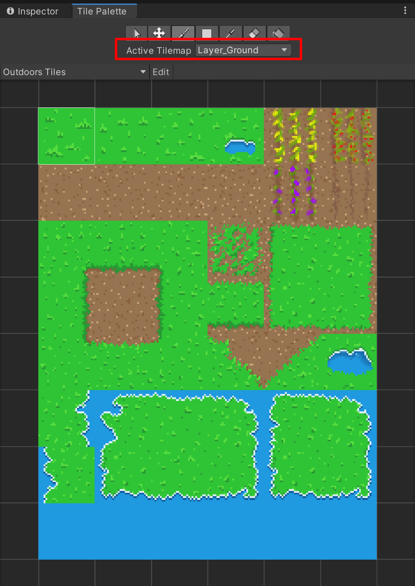 이때 Active Tilemap은 Layer_Ground로 설정하여야 합니다.