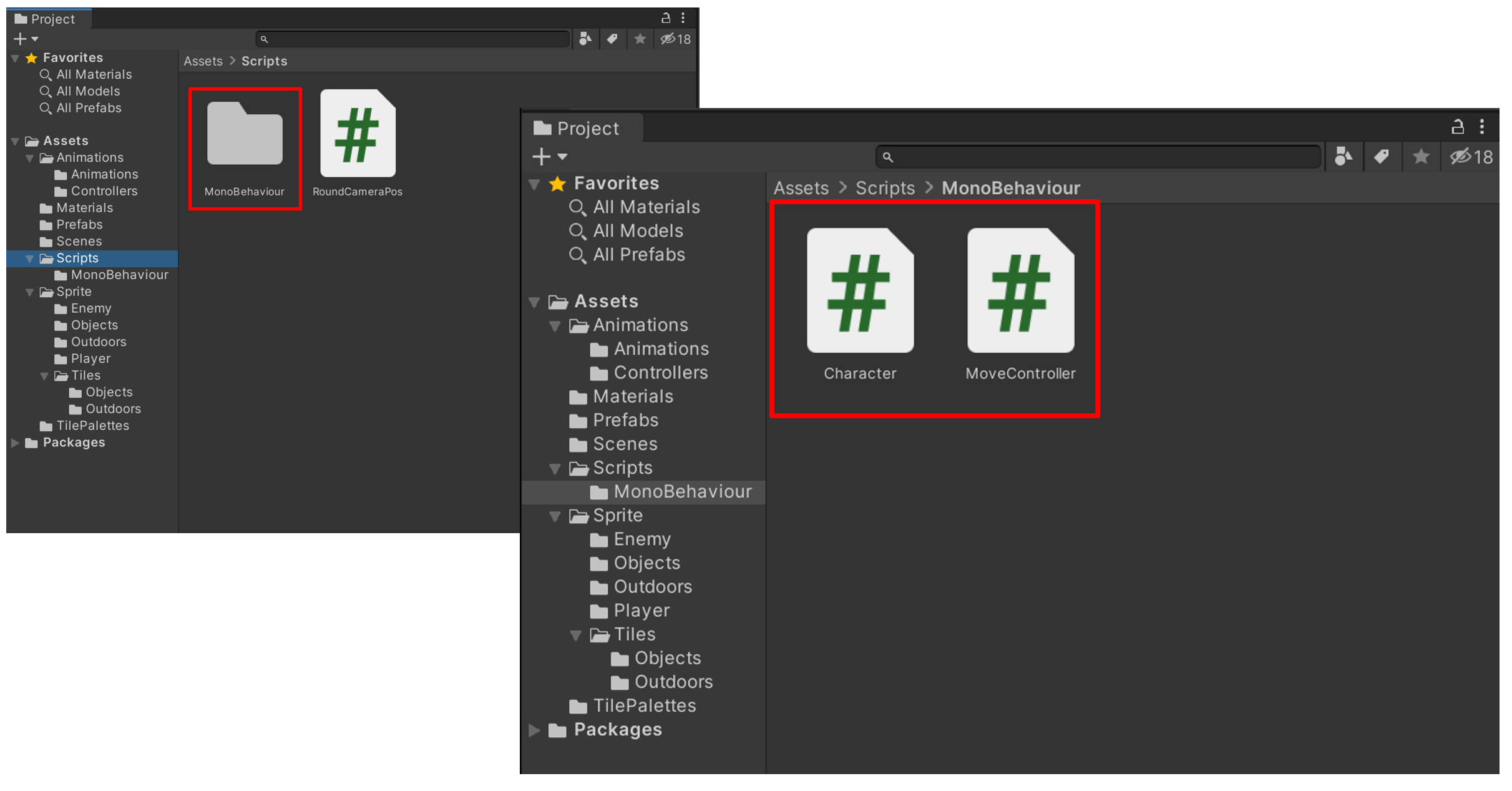 1. Assets 폴더 > Scripts 폴더에 MonoBehaviour 폴더를 생성합니다.