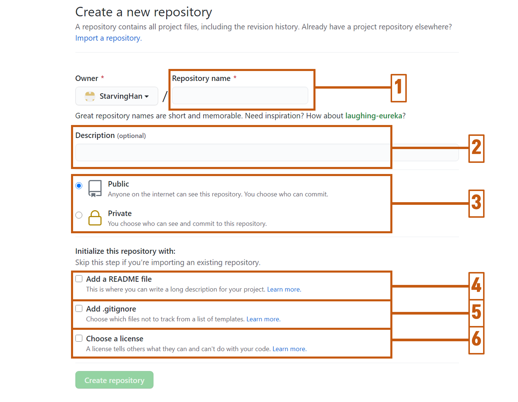 Create repository 버튼을 클릭하면 다음과 같은 내용이 등장합니다.