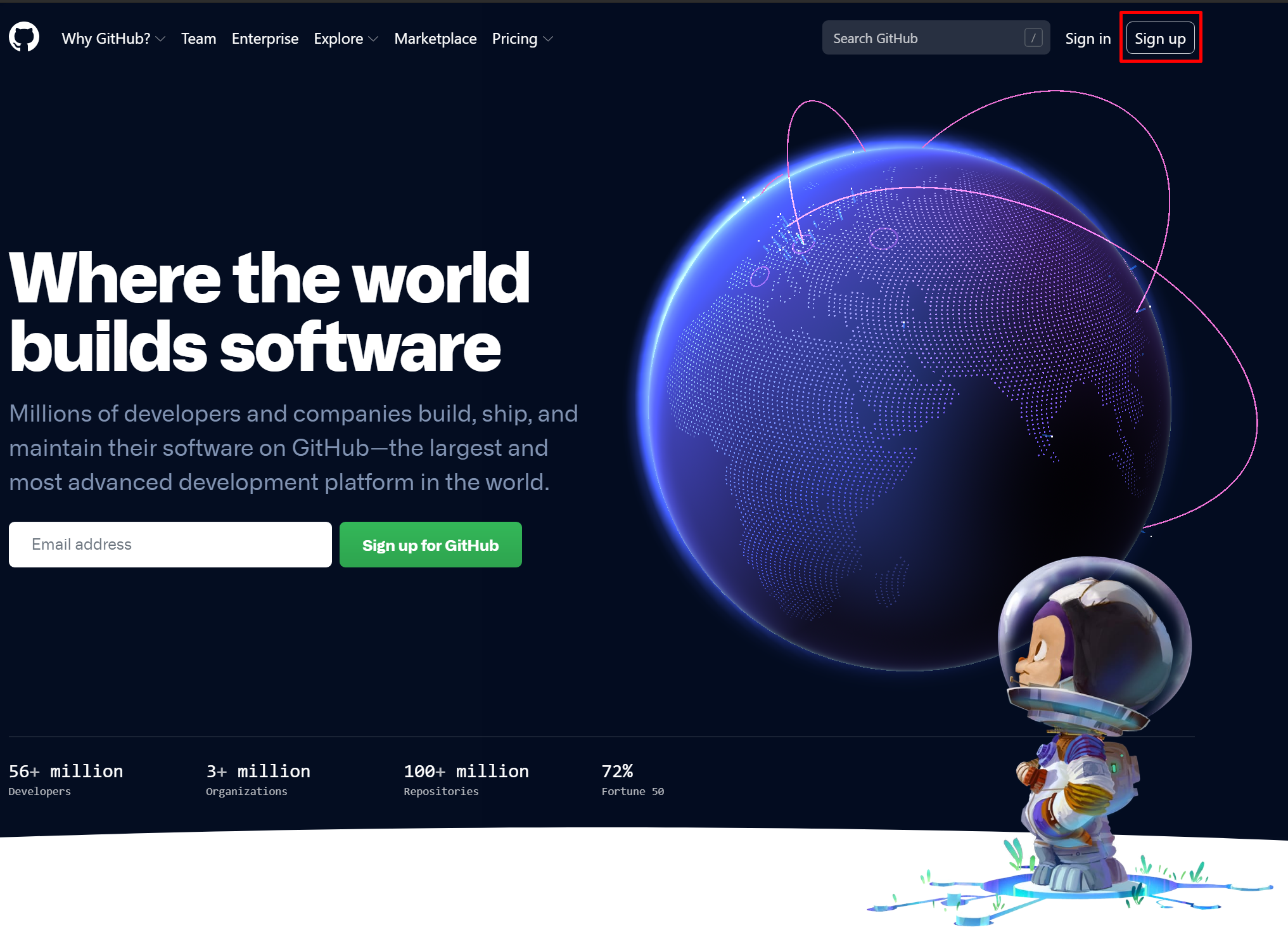 상단에 Sign up 버튼을 클릭하여 회원가입을 진행하면 됩니다.