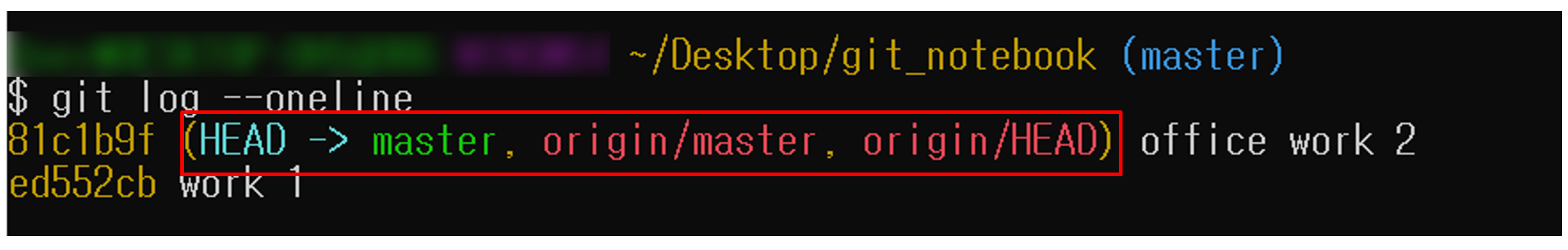 origin/master ,origin/HEAD 는 원격저장소의 커밋이 최종 커밋이라는 의미입니다.