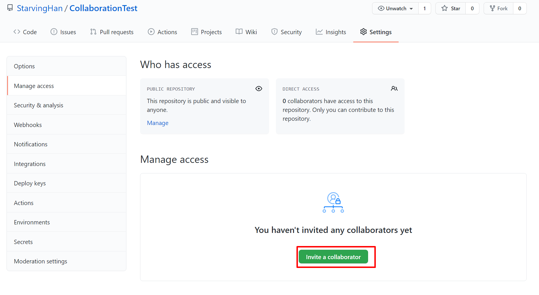 이 저장소에 공동 작업자를 추가하기 전에 초대하도록 하겠습니다.